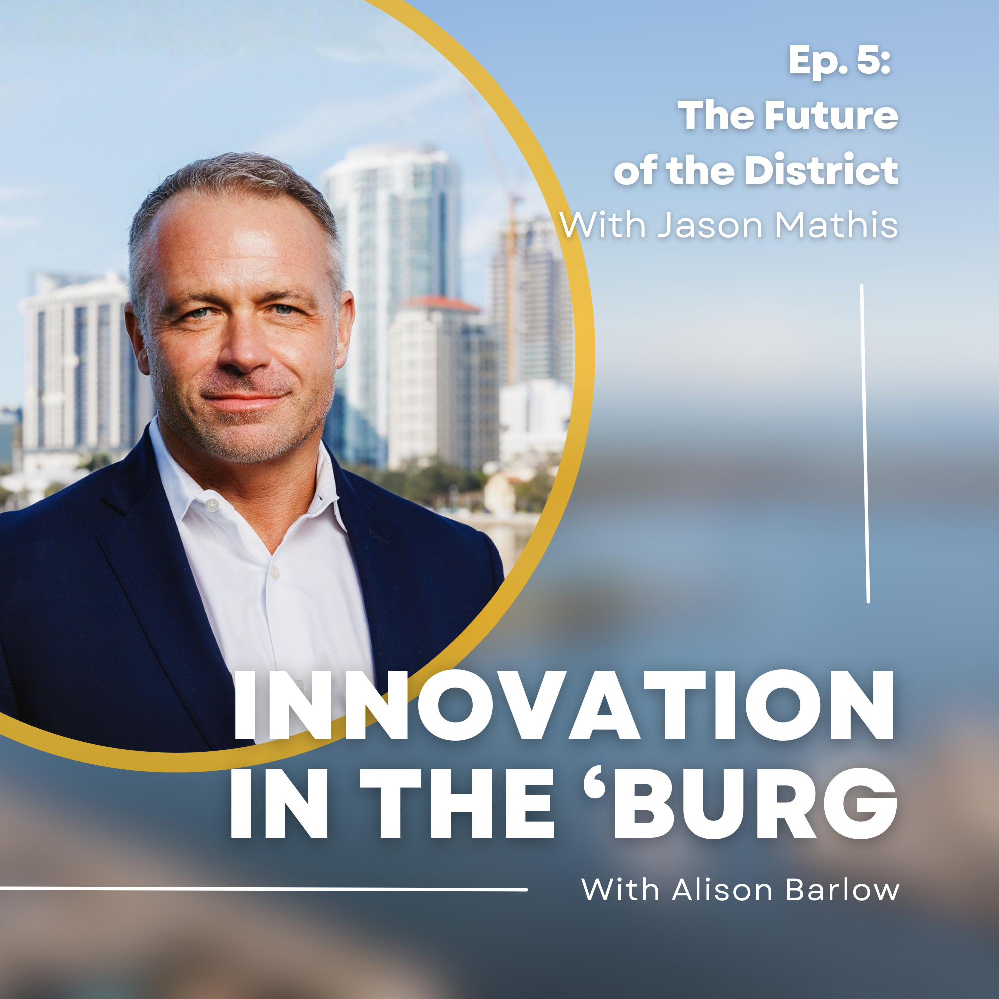 This episode features a conversation with Jason Mathis, CEO of the St. Petersburg Downtown Partnership. Together, Alison and Jason explore the future of the St. Pete Innovation District, what makes great cities thrive, and the expanding role of the Maritime and Defense Technology Hub.