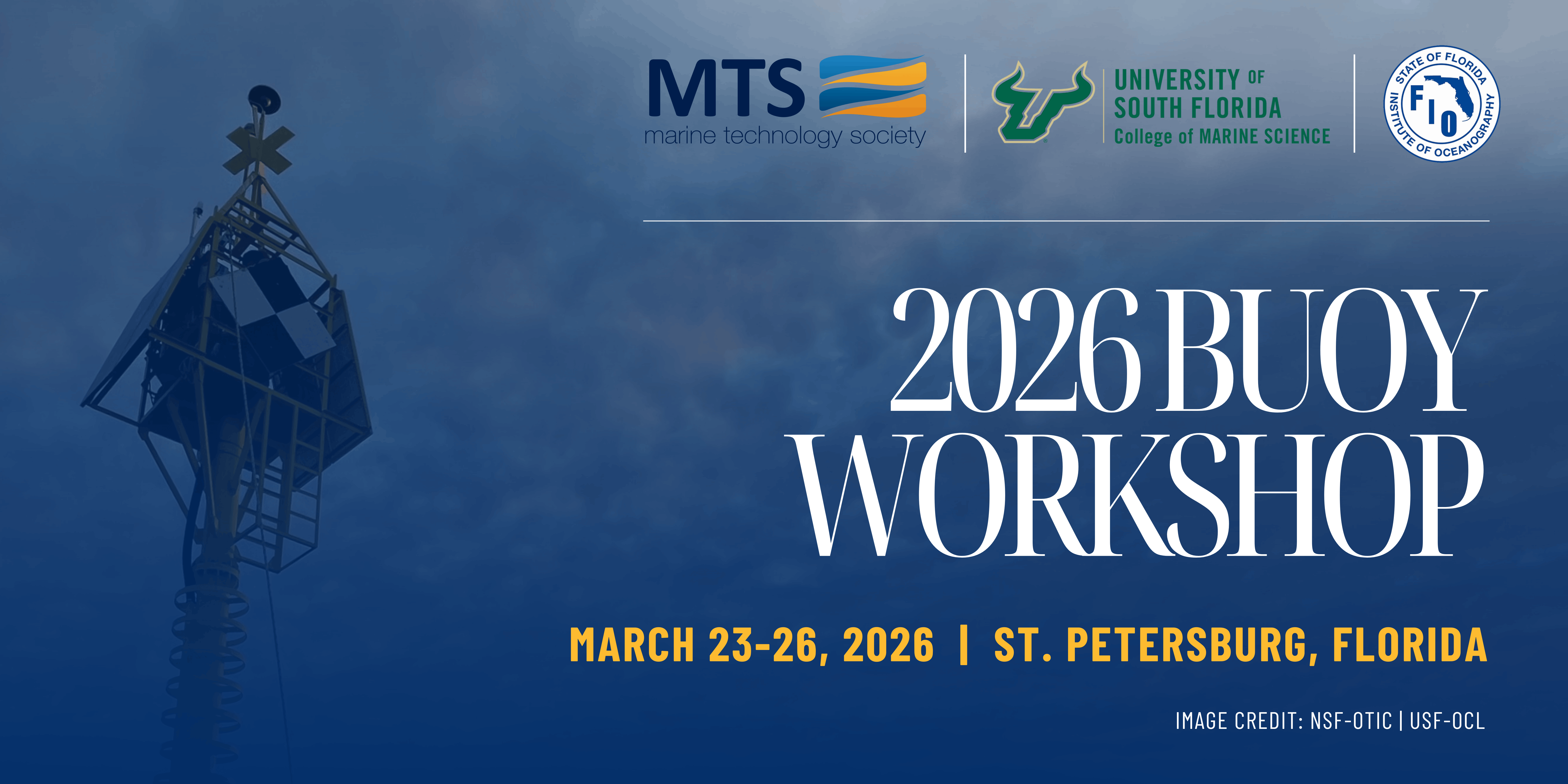 The Marine Technology Society invites you to the 2026 MTS Buoy Workshop, taking place March 23-26, 2026 in St. Petersburg, Florida.